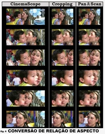 A enorme variedade de proporções trouxe desafios para exibir filmes em televisores, principalmente os mais antigos. Para preservar o formato original, utiliza-se o letterbox, que insere faixas pretas horizontais quando a tela é 4:3, mantendo a integridade da imagem.. Outra alternativa é o cropping, que corta as laterais para preencher a tela 4:3, ou o Pan & Scan, que “passeia” pela imagem para enquadrar apenas a área mais importante, movendo o recorte conforme a ação. Em diálogos, por exemplo, o enquadramento alterna entre os interlocutores.