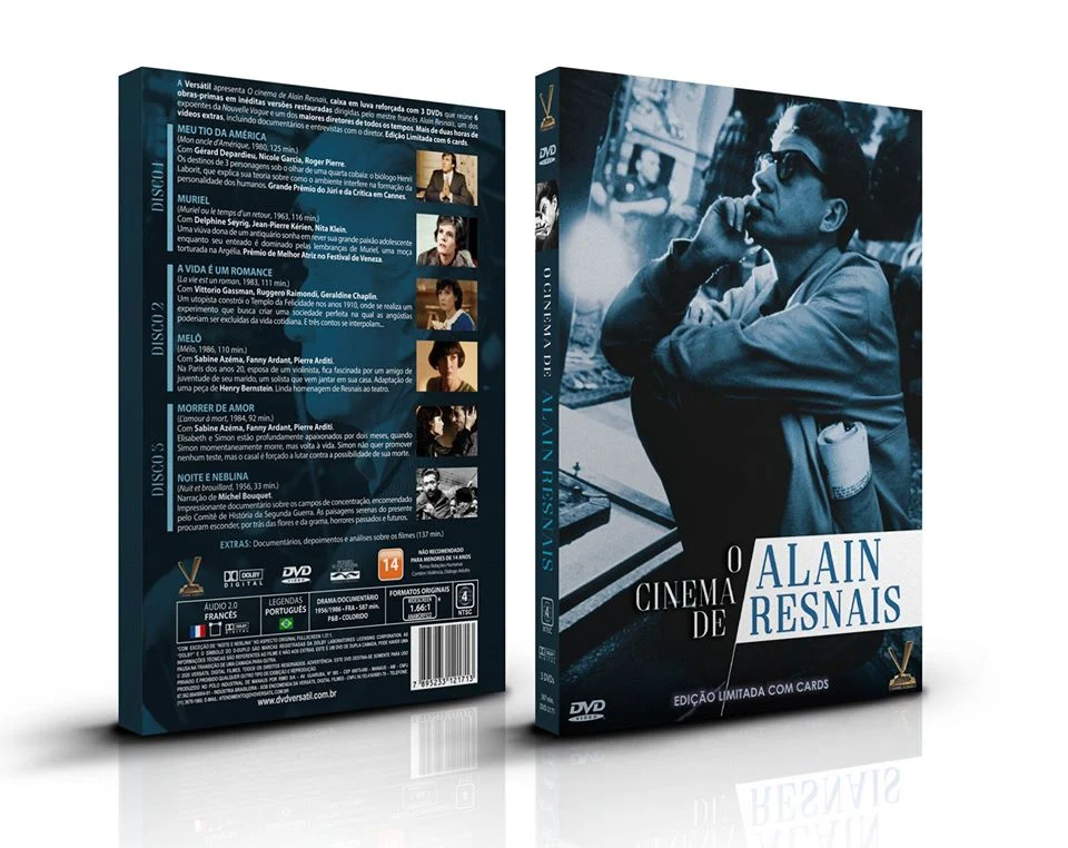 A Versátil lançou “O Cinema de Alain Resnais”, caixa em luva reforçada com 3 DVDs que reúne 6 obras-primas em inéditas versões restauradas dirigidas pelo mestre francês Alain Resnais (“Hiroshima Mon Amour”), um dos expoentes da Nouvelle Vague e um dos maiores diretores de todos os tempos. Mais de duas horas de vídeos extras, incluindo documentários e entrevistas com o diretor. Edição Limitada com 6 cards.